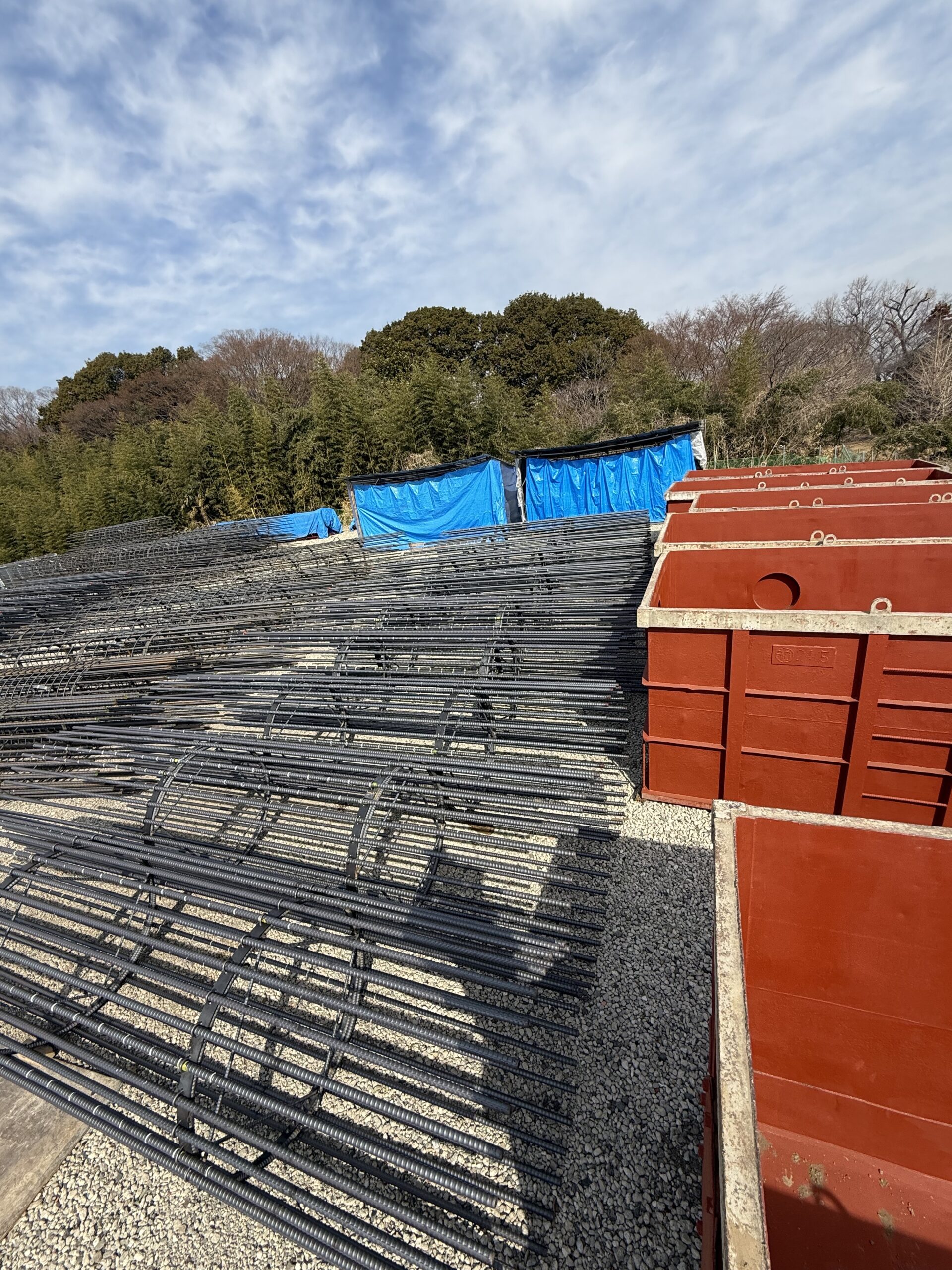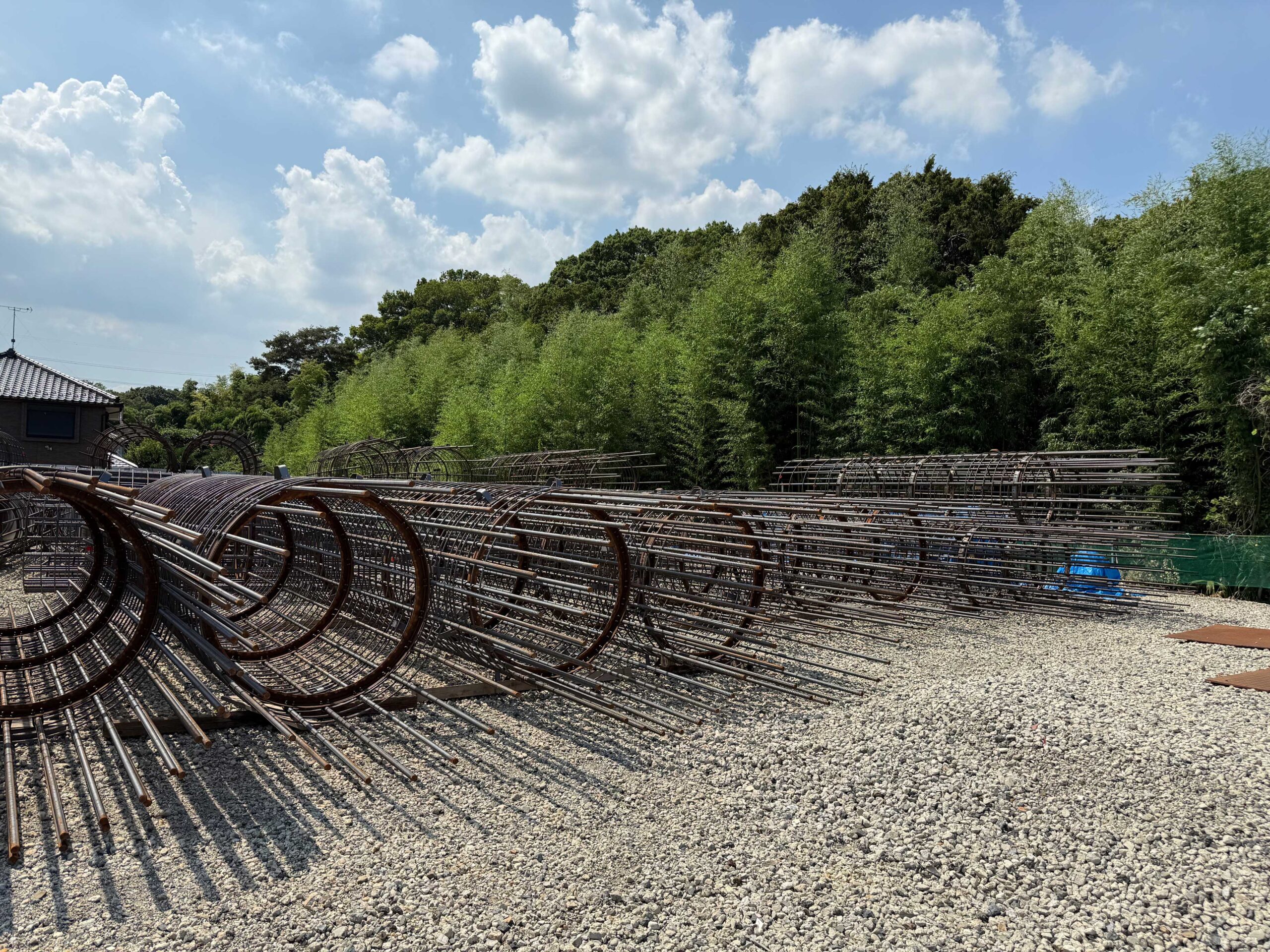 ビルなどの基礎になる地面の下に埋まっている杭の基礎に使用される鉄筋カゴ。